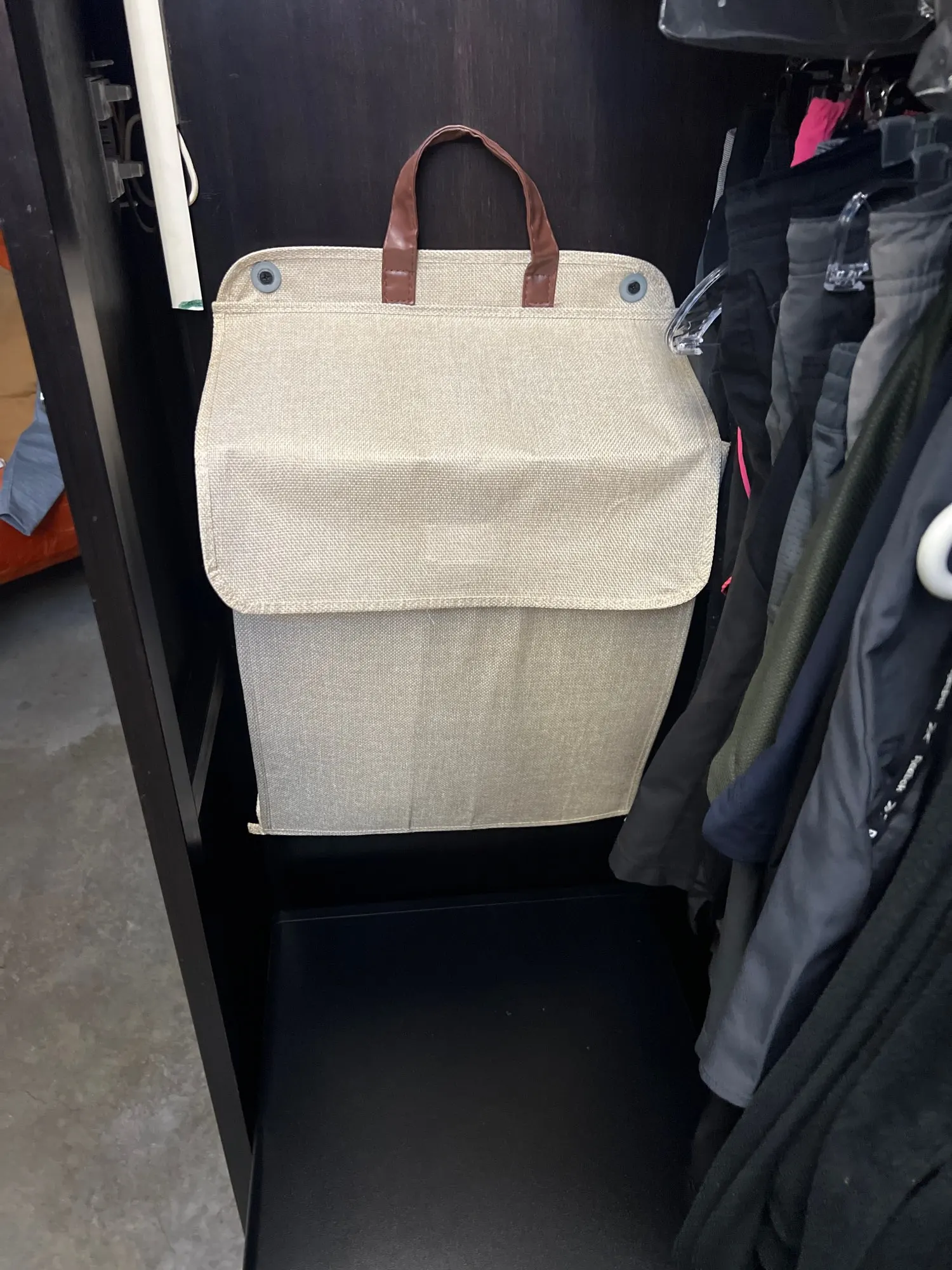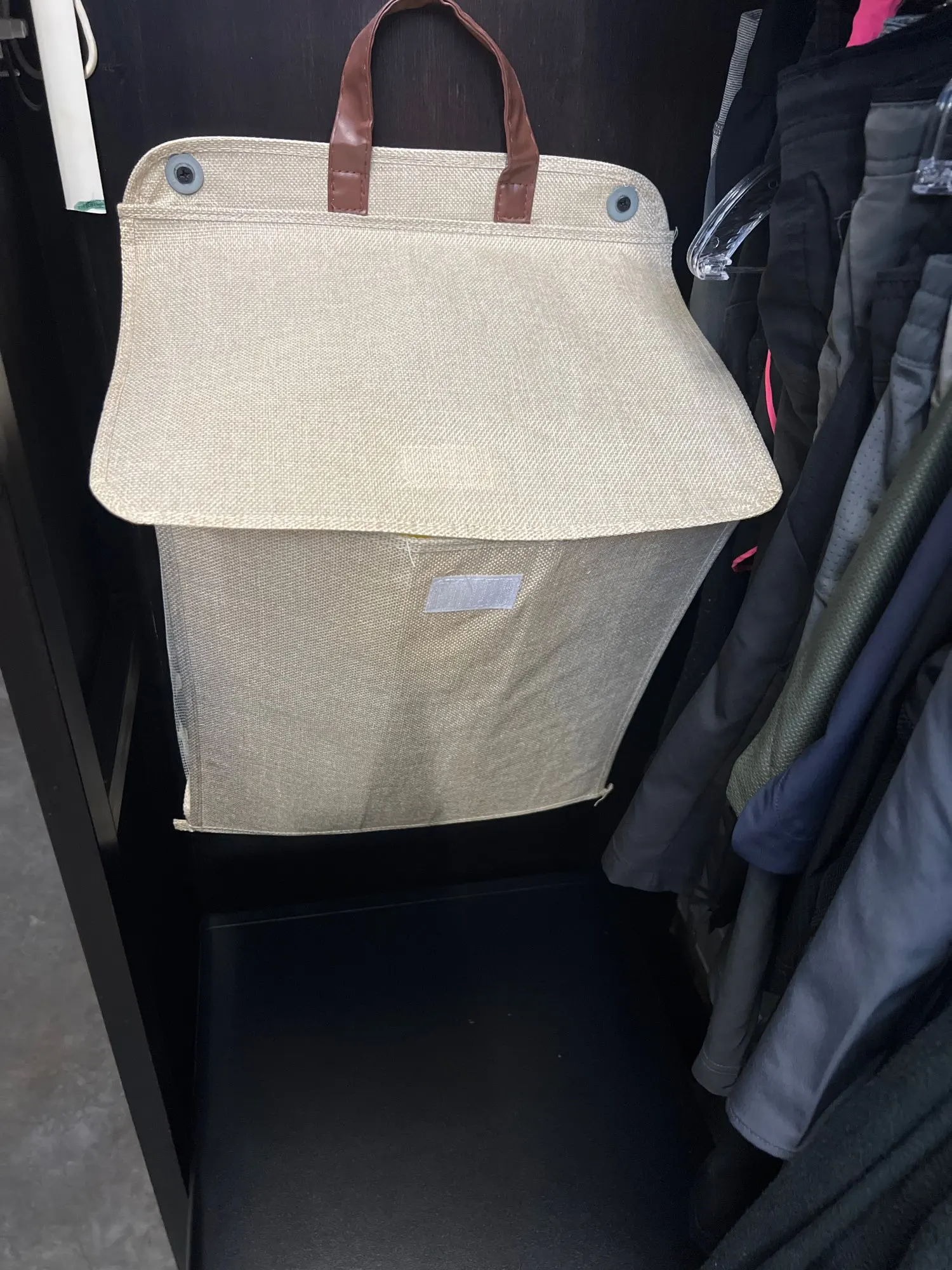 Avec son format compact et sa conception suspendue, le panier en lin beige permet de stocker le linge sans encombrer l’espace au sol. Idéal pour une salle de bain ou une petite chambre, il s’accroche facilement derrière une porte ou sur un mur.